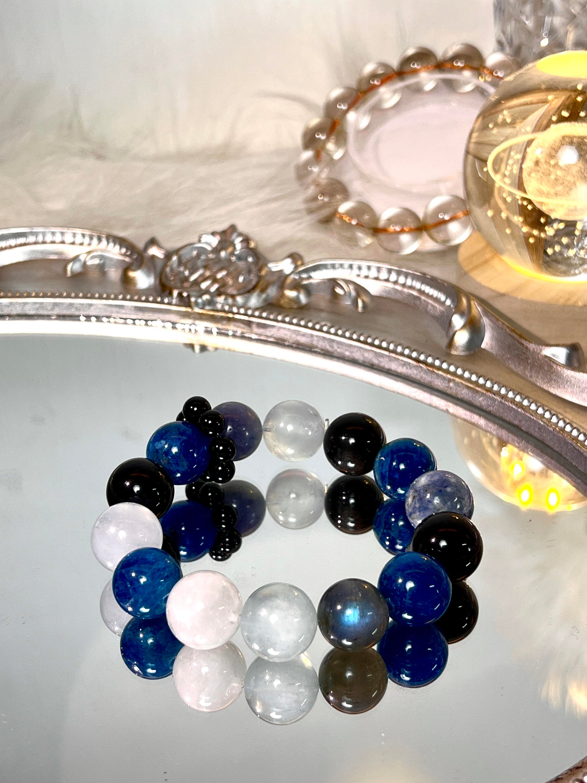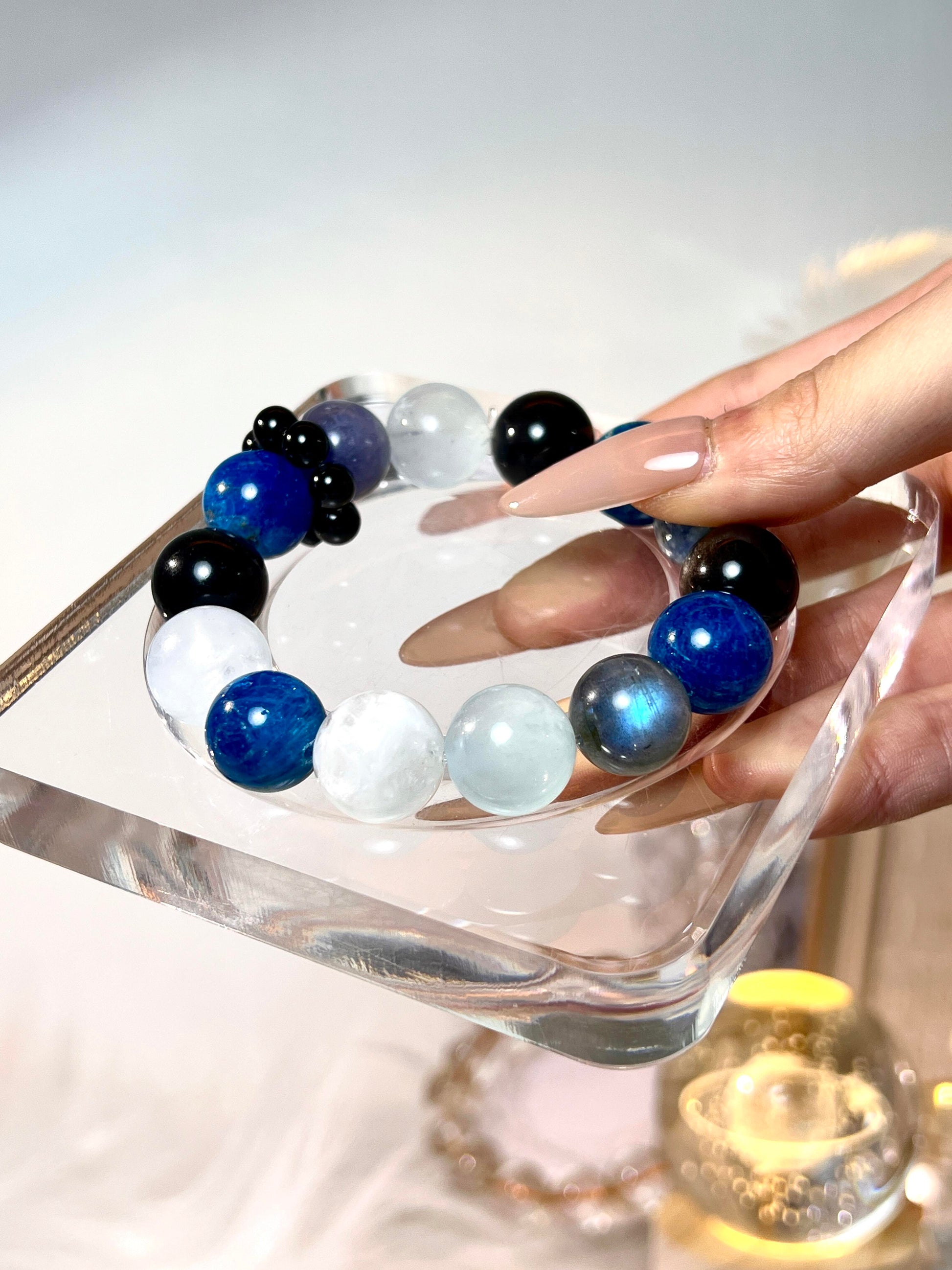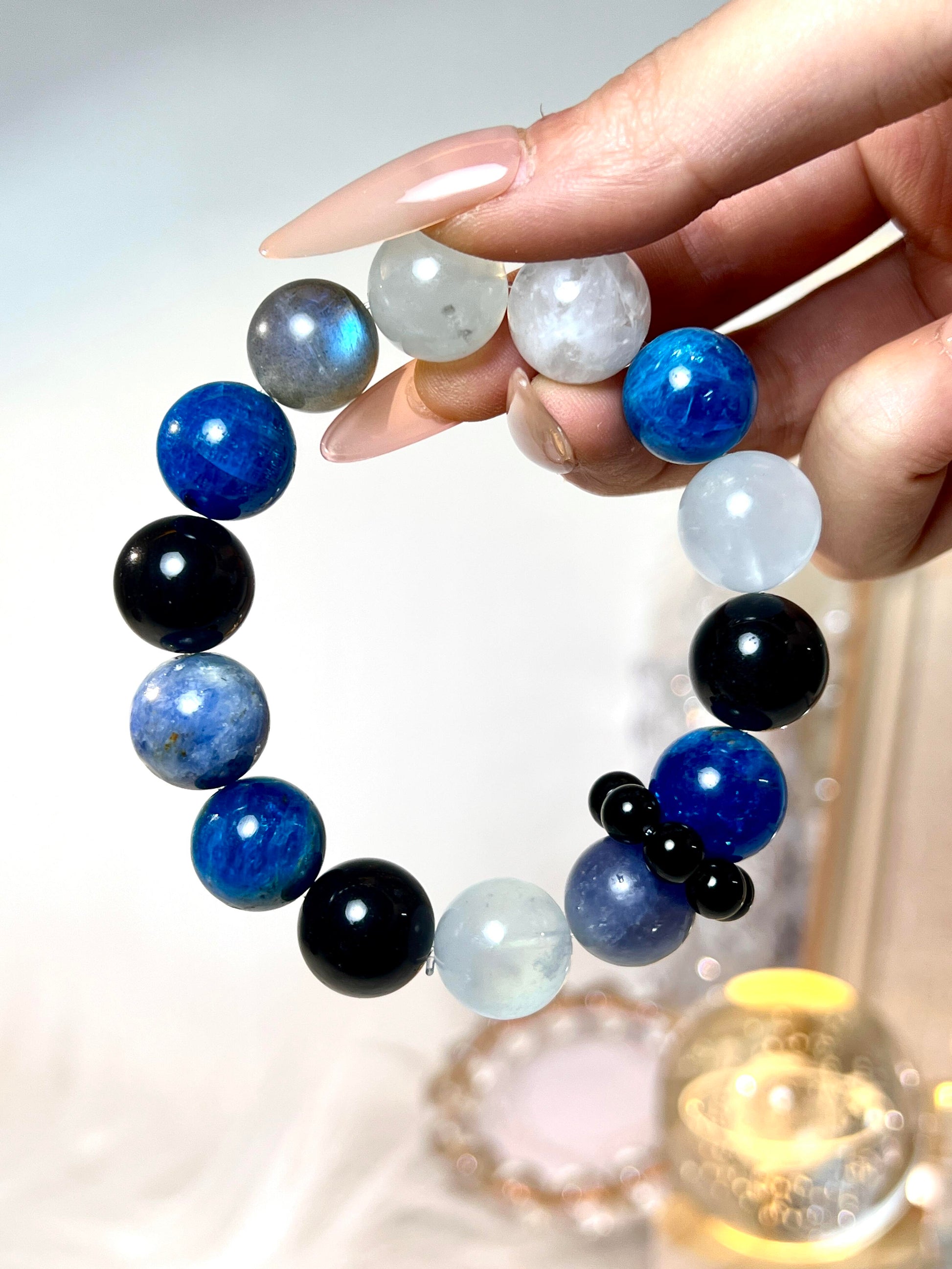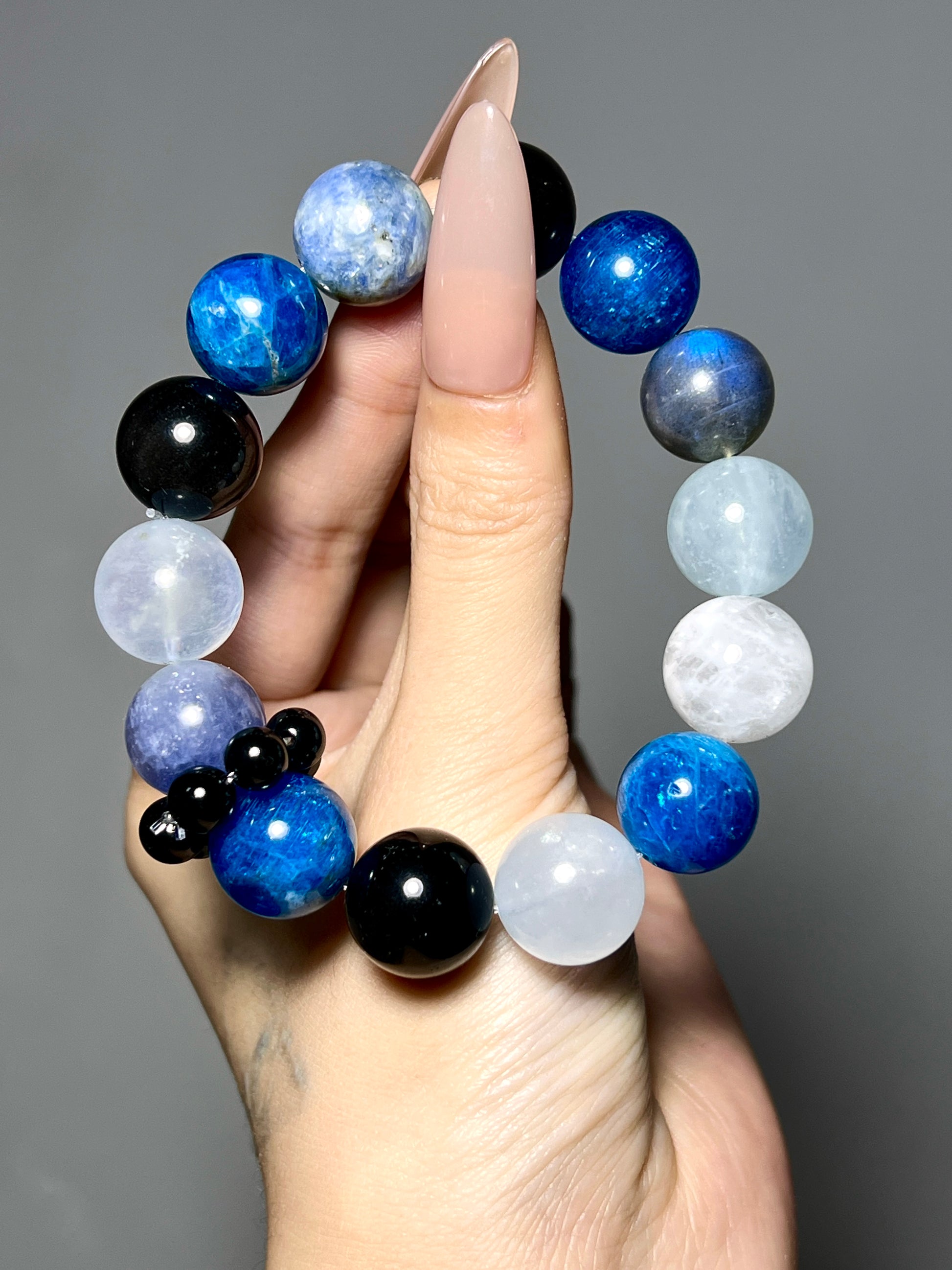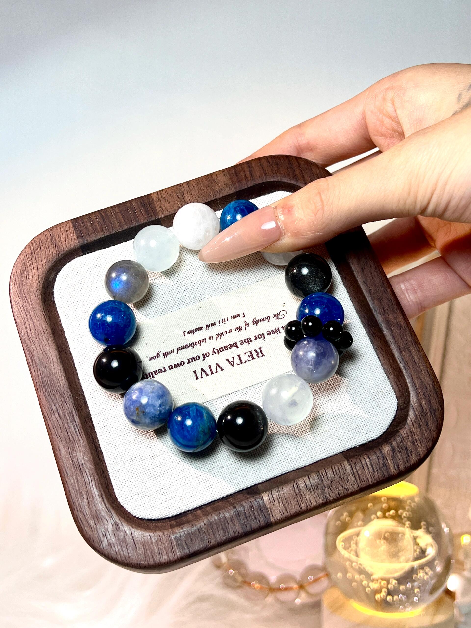 13mm Blue Apatite | 13mm Silver Sheen Obsidian |
