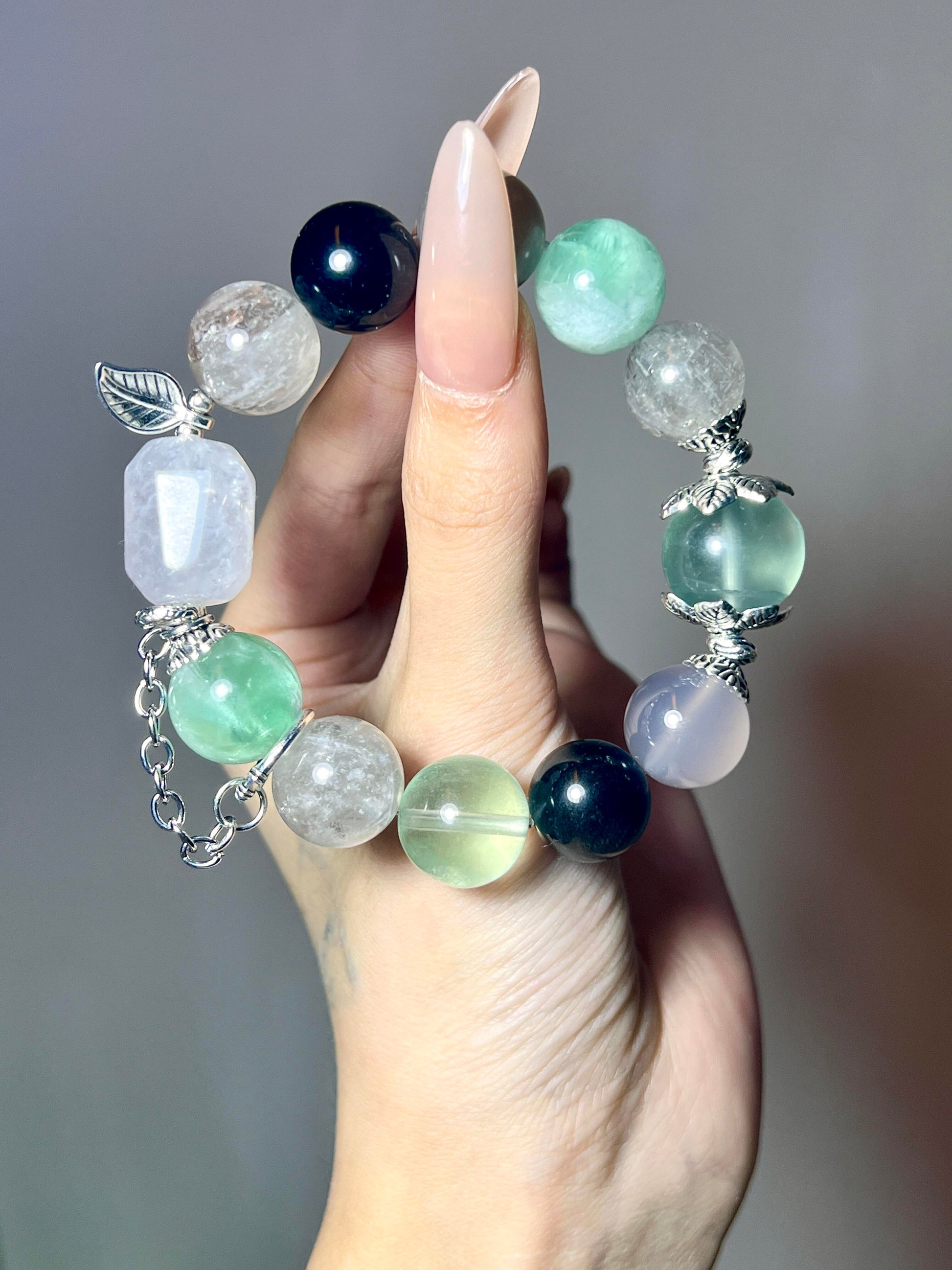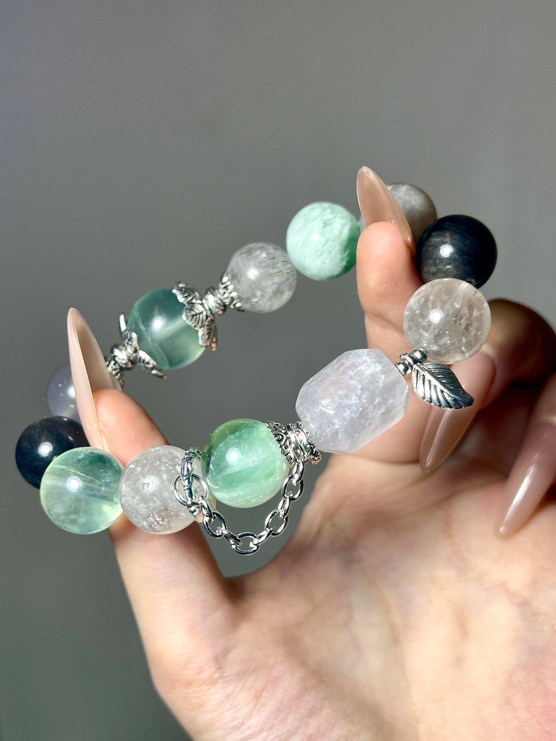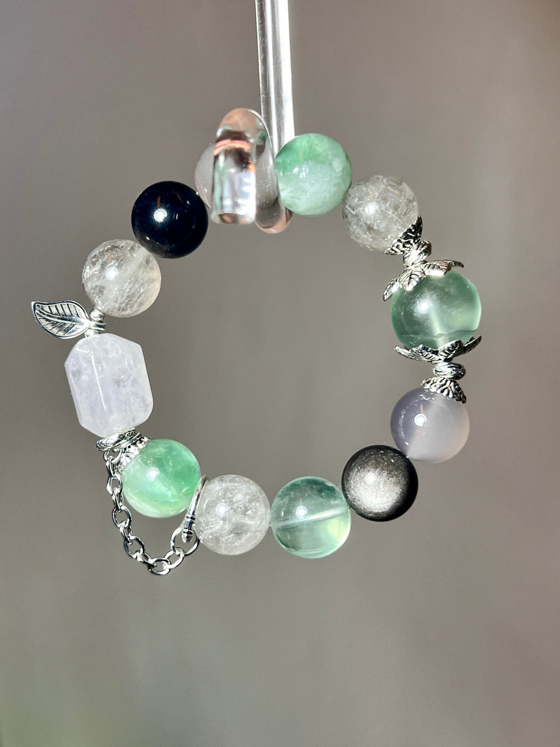18mm White Phantom Quartz Natural Shape | 14mm Feather Green Fluorite |